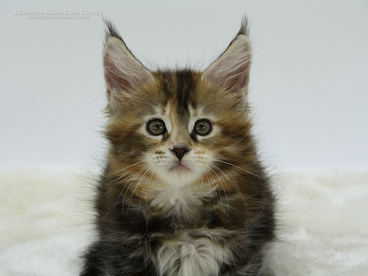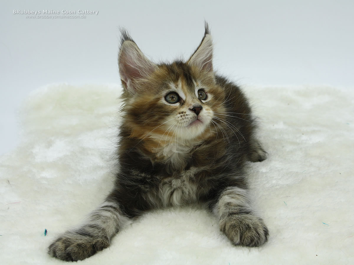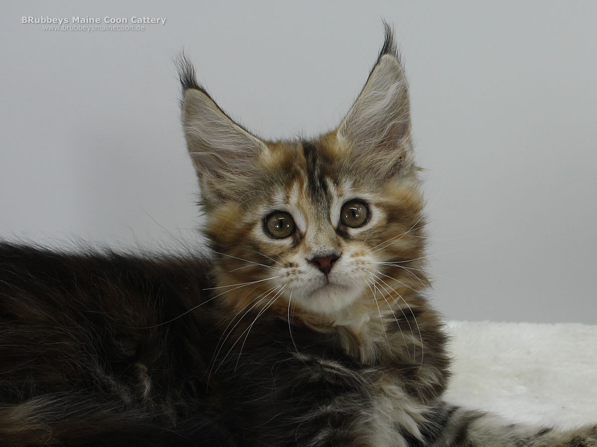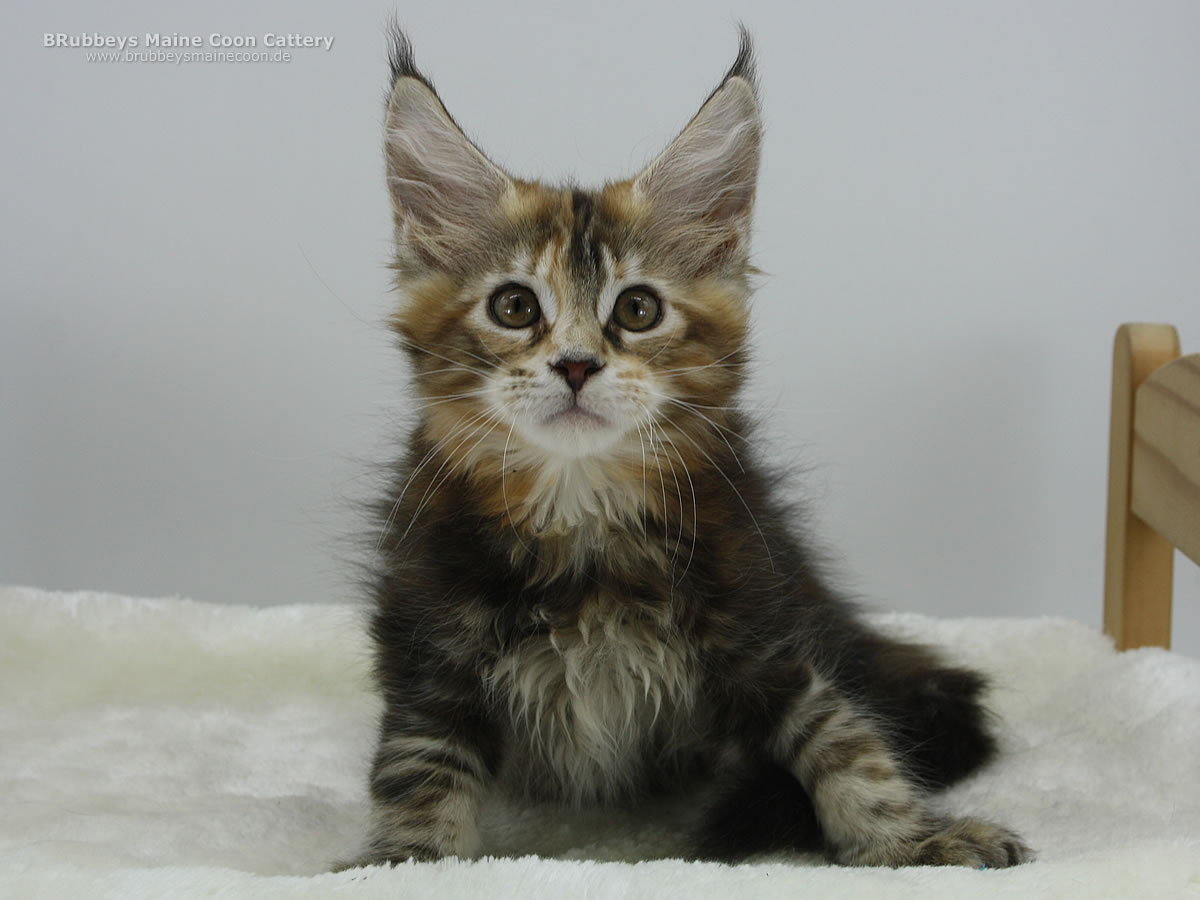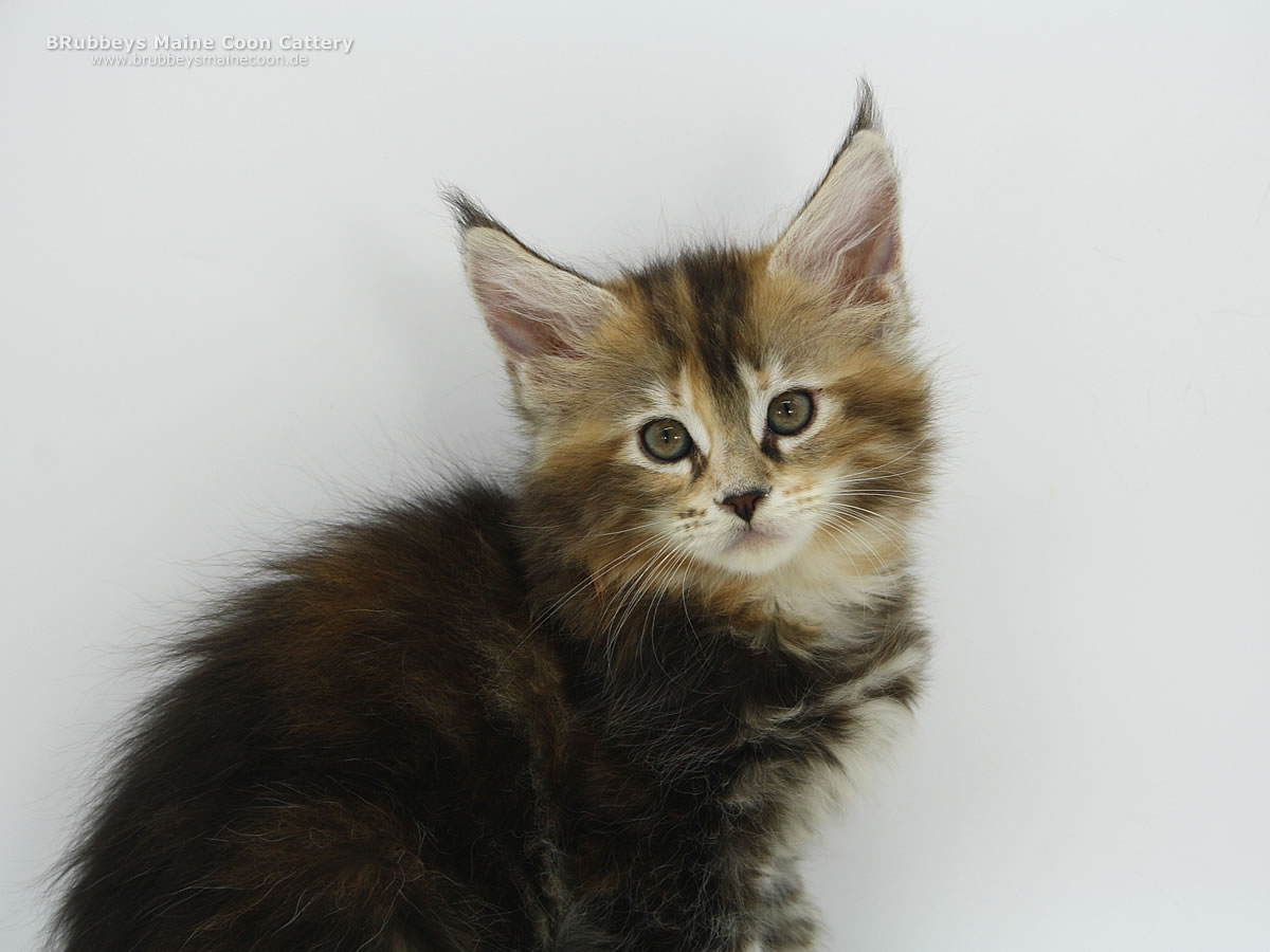Das hübsche bunte Mädel macht mir viel Freude. Sie ist ein eher ruhiges Katzenkind, liebt es zu kuscheln. Typvoll, mit schöner Schnute, tollen Ohren und dicken Beinchen. Ich bin gespannt, wie sie sich weiter entwickelt.