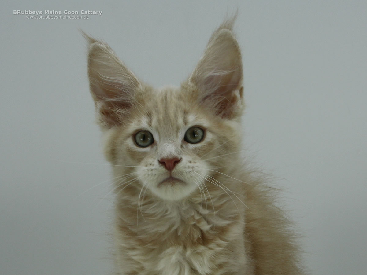 Das Katzenkind BRubbeys Zero ist ein schöner Vertreter seiner Rasse. Er ist ein eher ruhiger Kerl, der sich an den Rauferein seiner Geschwister nur mäßig beteilig. Er ist eher lieb und gern auf dem Arm. Ich mag sein liebes Gesicht sehr.